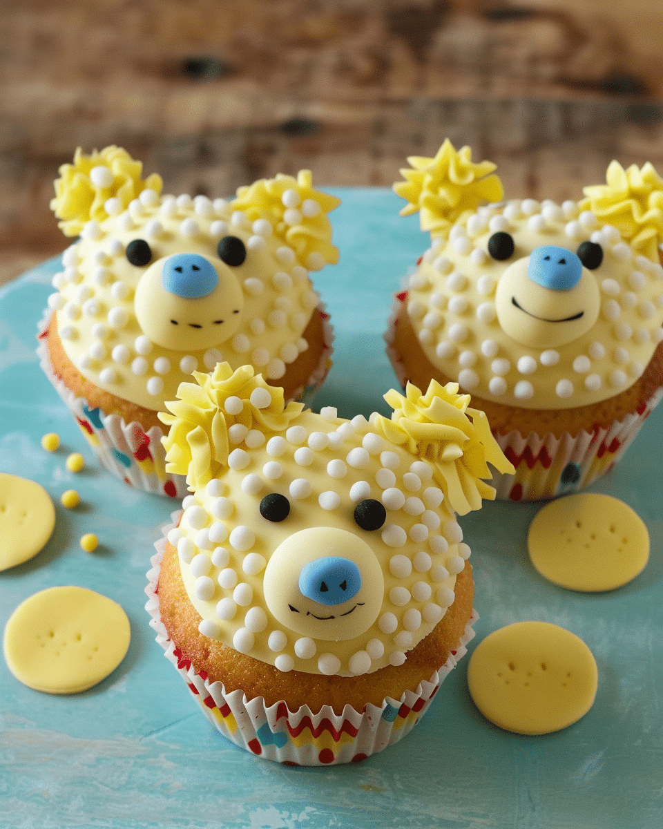 Pudsey Bear Cupcakes are fun, cheerful vanilla cupcakes decorated to look like the beloved Children in Need mascot, complete with a yellow fondant face and colorful polka-dot bandana. Perfect for bake sales, fundraising events, or fun baking with kids.