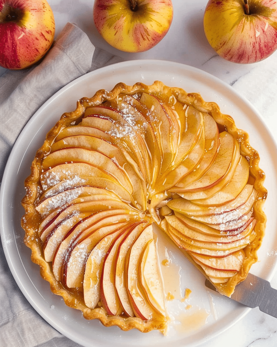 This recipe is a beautiful combination of simplicity and flavor. Using store-bought puff pastry saves time without sacrificing taste or texture. The tart is crisp, buttery, and perfectly balanced by the sweetness of the apples and the subtle warmth of cinnamon or spice. It’s versatile, quick to prepare, and makes a lovely finish to any meal or a delicious afternoon snack.