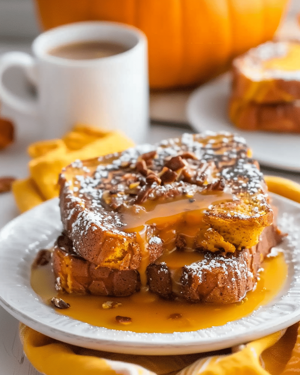 This recipe is a perfect way to repurpose leftover pumpkin bread or elevate store-bought loaves. The spiced, slightly sweet bread soaks up the custard beautifully, giving you a decadent French toast with an autumn flavor profile. It’s quick to prepare, looks impressive, and fills your kitchen with the comforting aroma of cinnamon, nutmeg, and pumpkin.