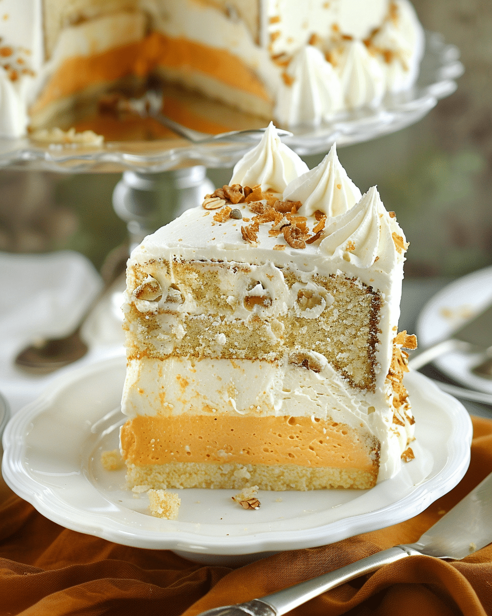Pumpkin Cheesecake Cake is a rich, layered dessert that captures the essence of fall in every bite. With its moist pumpkin cake, silky cheesecake center, and smooth cream cheese frosting, it’s a dessert worth celebrating. Whether served at a holiday dinner or as a weekend treat, this cake is guaranteed to impress and satisfy.
