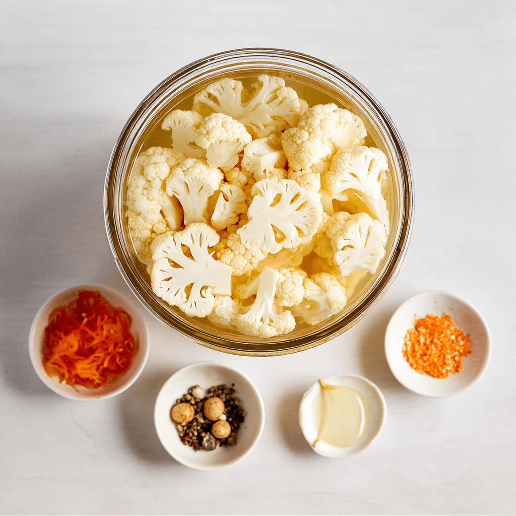 Quick pickled cauliflower is a crunchy, tangy, and colorful vegetable pickle made by soaking fresh cauliflower in a seasoned vinegar brine. It’s easy, no-cook, and perfect for snacking, salads, and more.
