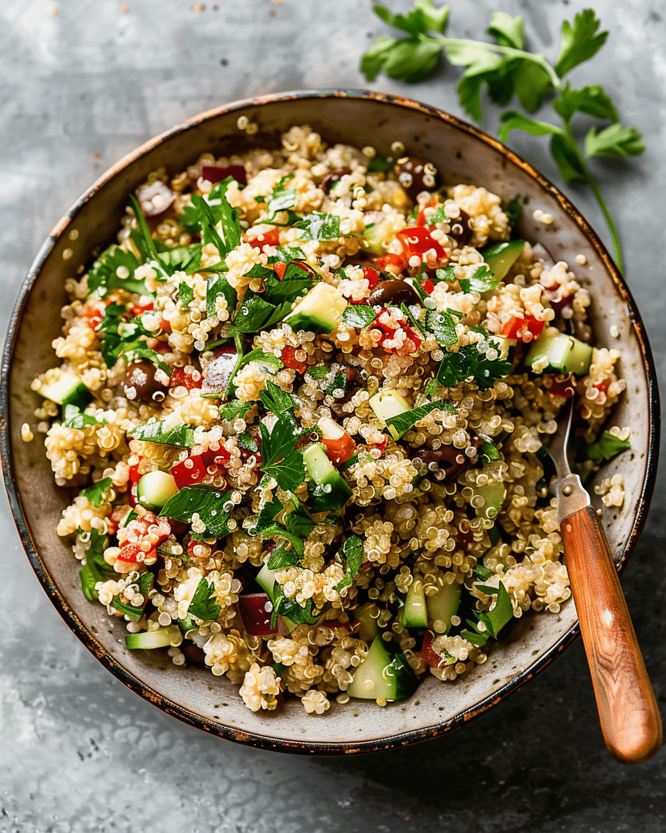 This Quinoa Salad is a simple, nutritious, and delicious dish that’s perfect for any occasion. With its vibrant vegetables, fluffy quinoa, and tangy dressing, it’s light but filling, making it a great option for lunch, dinner, or as a side dish. It’s customizable, easy to make, and full of fresh flavors that everyone will enjoy. Whether you’re meal prepping or just looking for a quick, healthy meal, this quinoa salad is sure to become a go-to in your recipe collection.