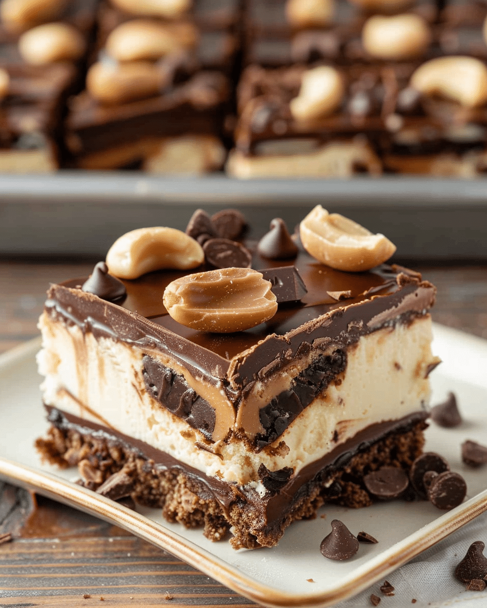Reese’s Cheesecake Bars are a decadent dessert with a buttery chocolate cookie crust, creamy peanut butter cheesecake filling, and a topping of Reese’s candies. Perfect for chocolate and peanut butter lovers, these bars are rich, indulgent, and easy to share.