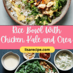This rice bowl with chicken, kale, and creamy sauce is a simple yet satisfying meal that brings together wholesome ingredients and bold flavors. With its versatility and ease of preparation, it’s a reliable recipe you can enjoy any day of the week