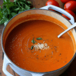 Roasted Tomato Soup is a rich, comforting dish made with fresh, oven-roasted tomatoes, garlic, and onion blended with herbs and optionally finished with cream. It’s a cozy, flavorful soup perfect for any season.