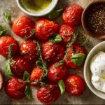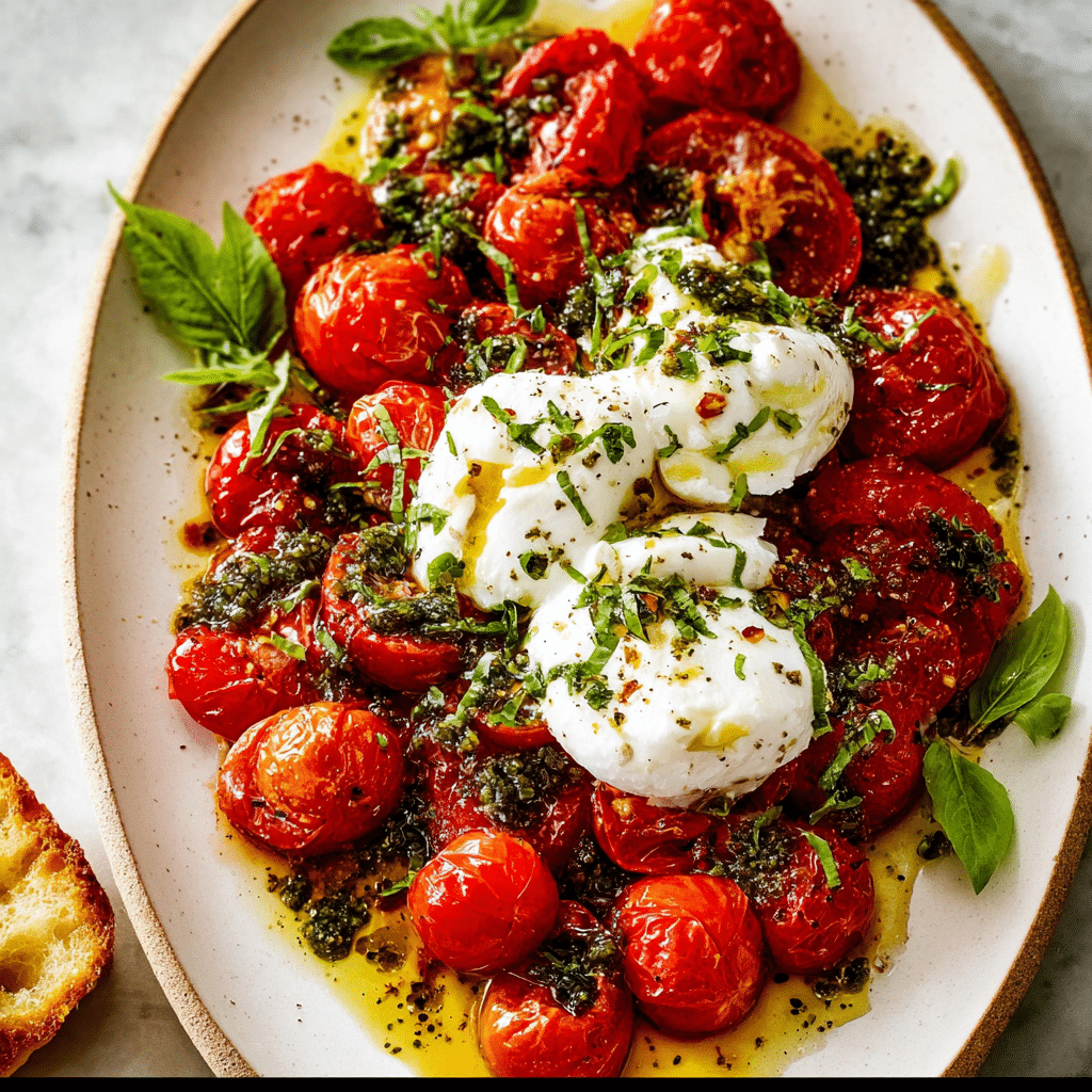 This Roasted Tomatoes with Burrata recipe is a simple yet elegant appetizer that combines sweet, caramelized roasted tomatoes with rich and creamy burrata cheese. Finished with olive oil, fresh basil, and optional balsamic glaze, this Mediterranean-inspired dish is perfect for entertaining, serving with crusty bread, or enjoying as a light and flavorful meal.