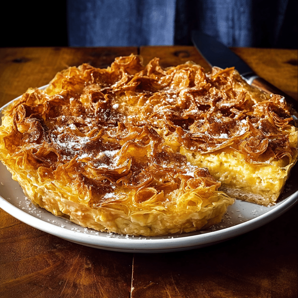 Keep phyllo dough covered with a damp cloth to prevent drying.Pour the custard slowly to ensure even absorption.Let the pie rest before serving for best texture.