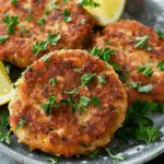 Salmon patties are crispy on the outside and tender inside, made with canned or cooked salmon, breadcrumbs, eggs, and flavorful seasonings. This quick and budget-friendly dish is perfect for weeknight dinners, meal prep, or as an easy appetizer.