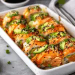 This recipe takes all the best parts of sushi—flavored rice, savory salmon, creamy sauces, and seaweed—and transforms them into a comforting, oven-baked dish. It’s perfect for sharing at gatherings, easy enough for weeknight dinners, and customizable for any palate. Plus, no sushi-rolling skills required.