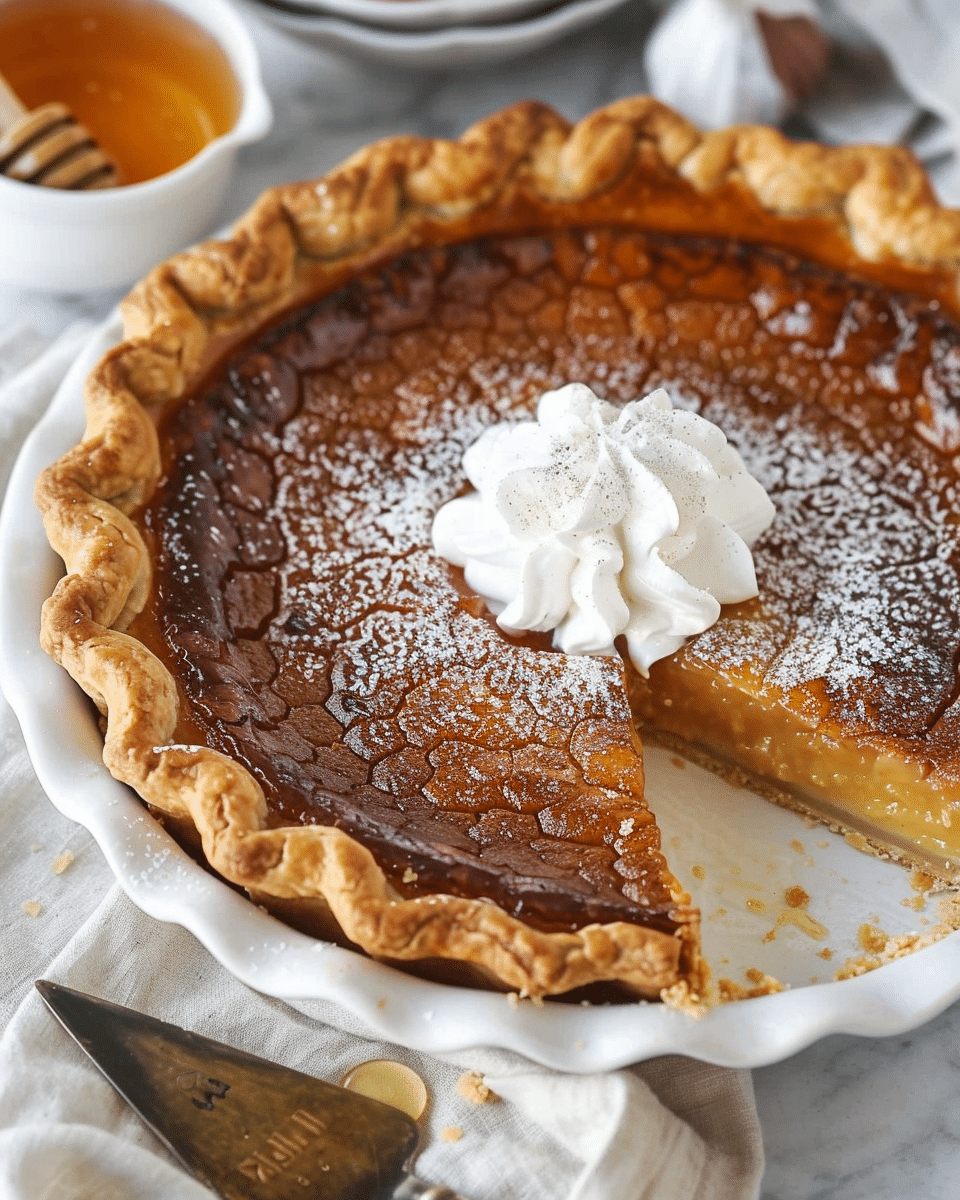 Salted Honey Pie is a silky, custard-like dessert baked in a flaky crust, combining the natural sweetness of honey with a touch of flaky sea salt for perfect balance. Elegant yet simple, it’s ideal for holidays, dinner parties, or a cozy night in.