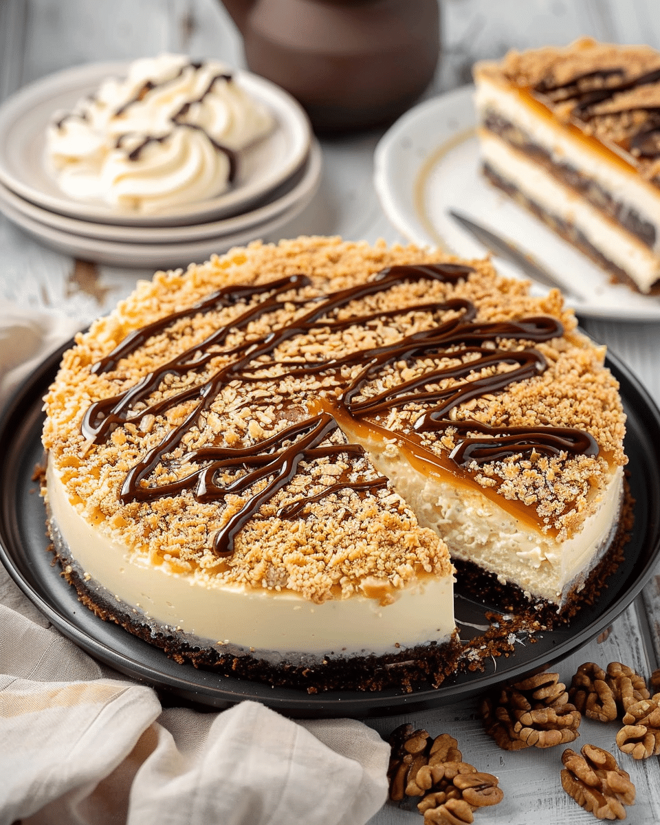 Samoa Cheesecake is a heavenly dessert that beautifully marries the flavors of the beloved Samoa cookie with the luxurious creaminess of a cheesecake. It’s sure to be a hit at any gathering, and with its decadent layers of caramel, coconut, and chocolate, it’s guaranteed to satisfy your sweet cravings. Whether you’re making it for a special event or just because, this dessert is a true showstopper!