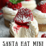 Before serving, place an upside-down strawberry on top of each cheesecake and add a small dollop of whipped topping on the tip and base to form a Santa hat.