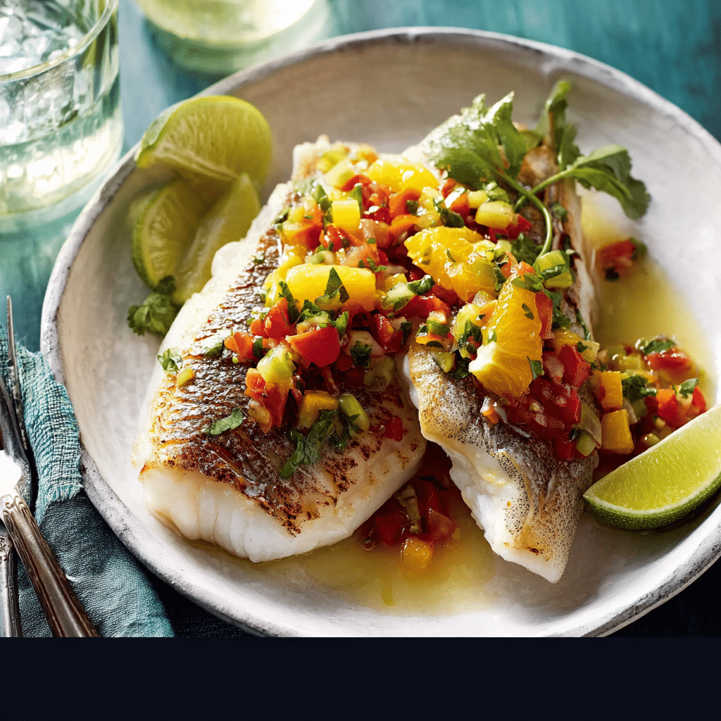 This Sea Bass with Citrus Salsa is a light and refreshing seafood dish featuring tender, flaky sea bass topped with a vibrant citrus salsa. Packed with bright flavors and fresh ingredients, this easy recipe is perfect for a healthy, elegant meal.