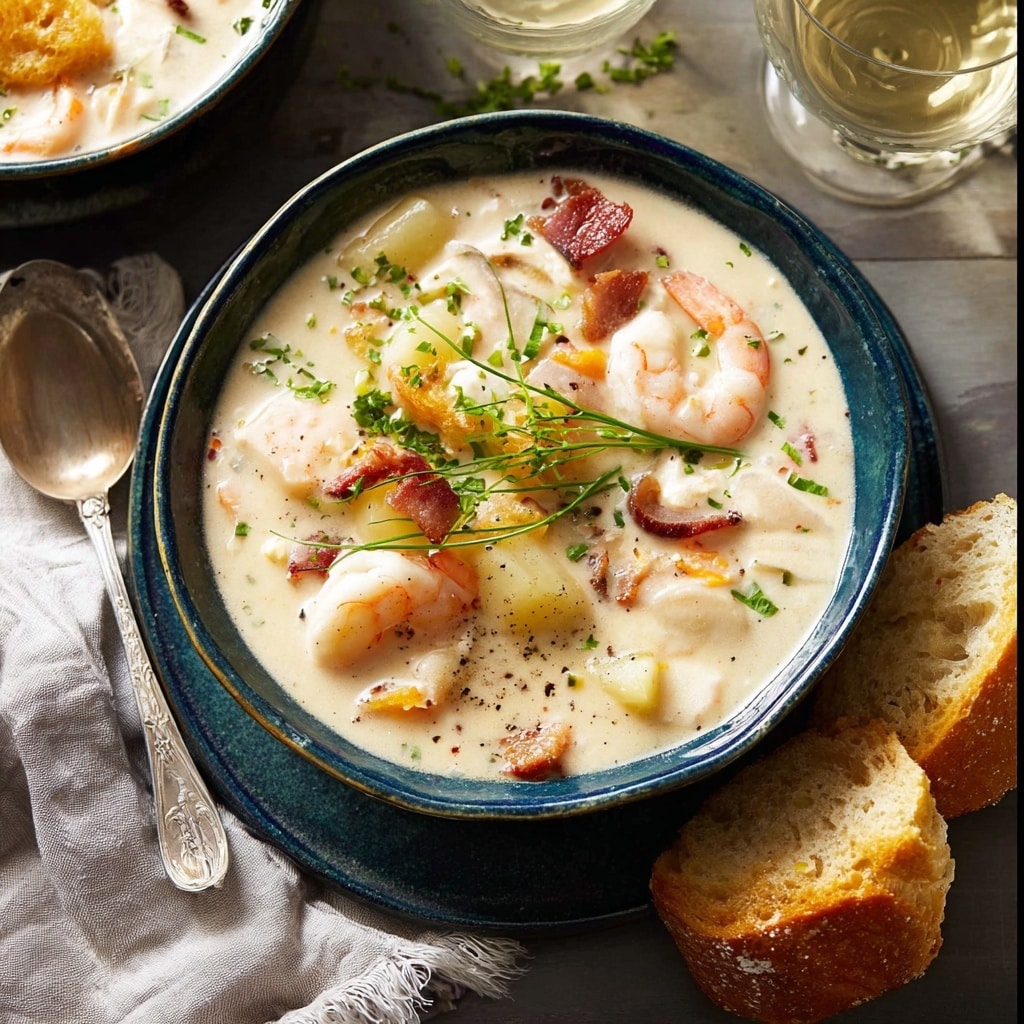 Seafood chowder is a creamy, hearty soup filled with a variety of fresh seafood and tender vegetables. It’s rich, flavorful, and perfect for cozy dinners or impressing guests with comforting coastal flair.