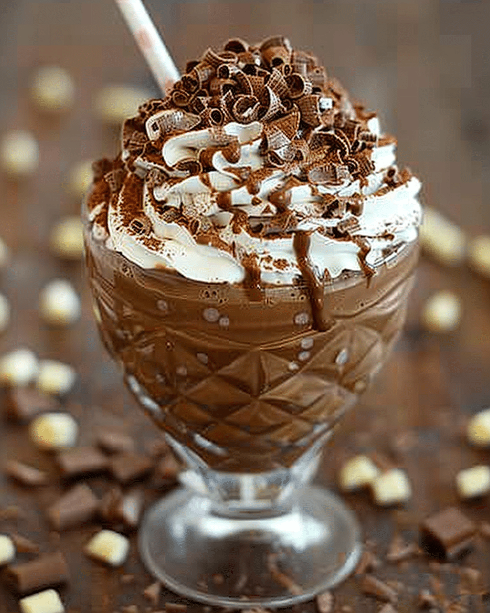 Serve: Pour the frozen hot chocolate into large glasses, and top with a generous swirl of whipped cream. Garnish with chocolate shavings or drizzle chocolate syrup over the whipped cream for an extra indulgent touch.