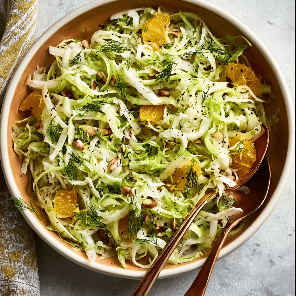 This salad is all about freshness and simplicity. The thinly shaved fennel offers a crisp texture and subtle licorice-like flavor that pairs beautifully with citrus and light dressings.