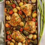 Use thighs for juicier meat or breasts for a leaner option.Add carrots, Brussels sprouts, or mushrooms for variety.Marinate chicken overnight for deeper flavor.For a spicy version, add red pepper flakes or hot sauce to the marinade.Serve over grains like rice, couscous, or quinoa for a heartier meal.