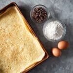A 9×13-inch sheet pan is standard, but you can use a larger one for thinner pancakes or a smaller one for thicker results.