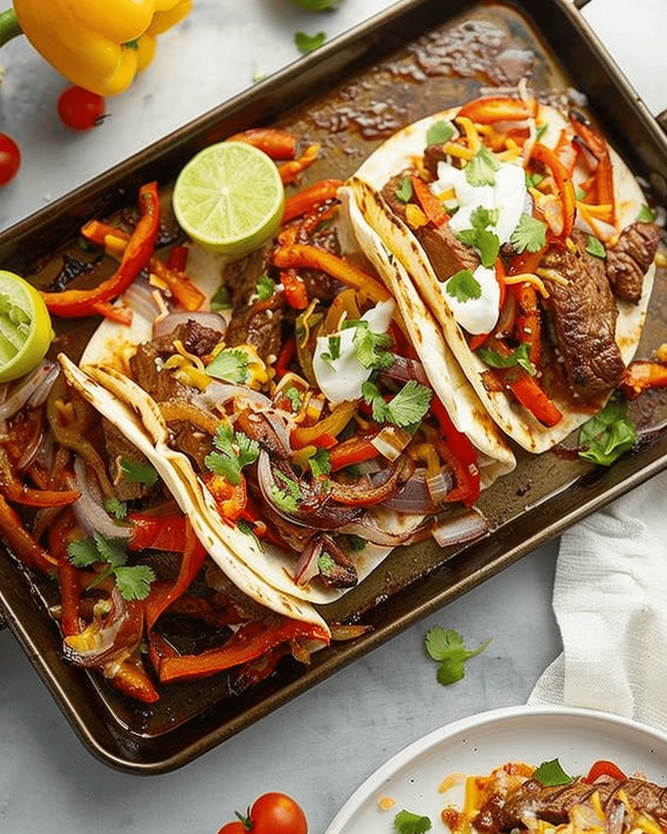 Sheet Pan Steak Fajitas are the perfect combination of savory, smoky, and tangy flavors, all cooked on a single sheet pan for easy cleanup. With tender strips of steak, bell peppers, and onions, seasoned with a delicious fajita spice mix, this dish is not only quick and easy but also full of vibrant, fresh flavors. The best part? It all cooks in one pan, making it a hassle-free dinner that’s ready in under 30 minutes. Whether you’re craving a weeknight dinner or hosting a fun taco night, these fajitas are sure to be a crowd-pleaser!