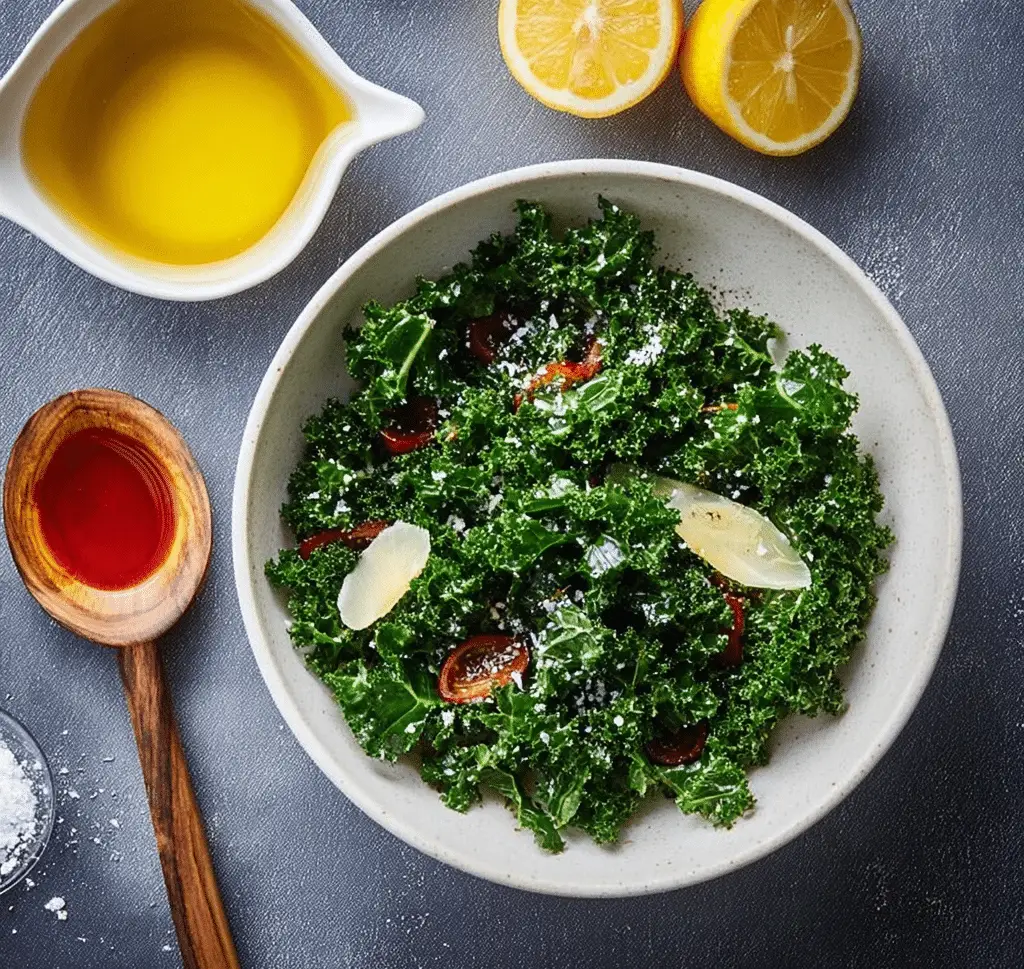 A fresh and healthy simple kale salad made with tenderized kale, lemon, and olive oil. Quick to prepare, nutritious, and perfect as a light meal or versatile side dish.