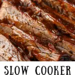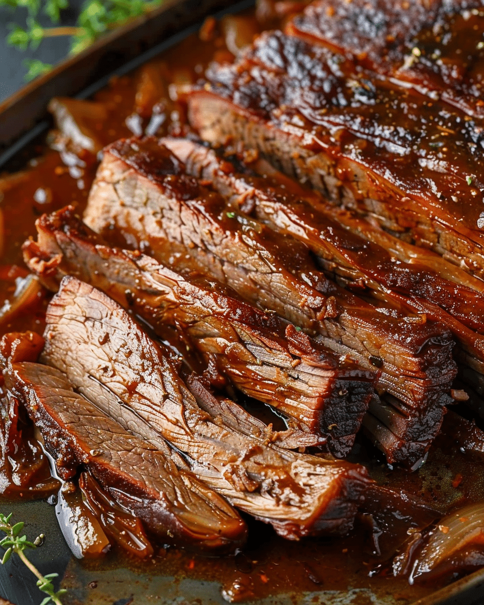 Skip searing to save time—flavor will still develop well in the slow cooker.For a BBQ-style version, add barbecue sauce and broil the brisket after cooking for a caramelized finish.Add vegetables like carrots or potatoes during the last 2–3 hours of cooking.Slice against the grain for the most tender texture.Freezes well—store with juices to keep moist.