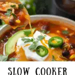Slow Cooker Chicken Enchilada Soup is a hearty, flavorful one-pot meal filled with shredded chicken, bold enchilada sauce, beans, corn, and spices. This comforting soup simmers in the slow cooker for an easy and satisfying dinner.