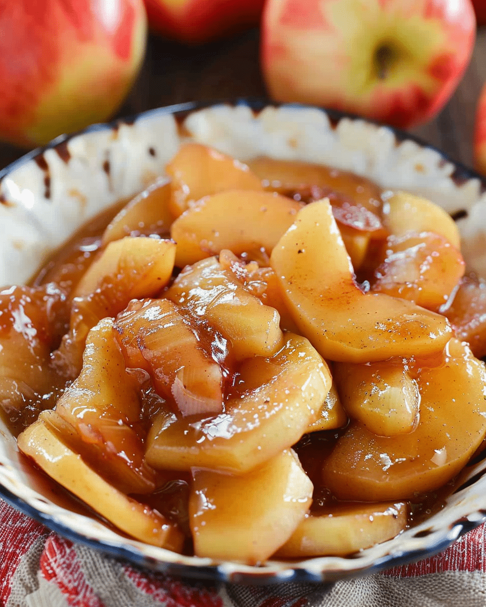 Slow Cooker Fried Apples are tender, caramelized apple slices slow-cooked with butter, cinnamon, and sugar until rich and syrupy. They’re perfect as a side dish, a topping for pancakes or ice cream, or a cozy dessert on their own.