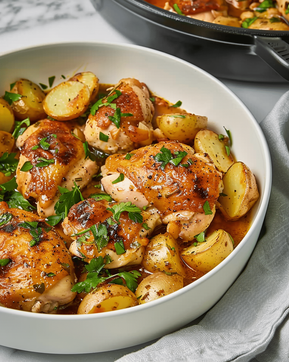 This dish is the perfect combination of convenience and flavor. The slow cooker does all the work while you enjoy juicy chicken and buttery potatoes infused with garlic, herbs, and parmesan cheese. With minimal prep and a restaurant-quality result, this recipe is great for family dinners, meal prep, or entertaining guests with minimal stress.