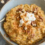 Store leftovers in an airtight container in the refrigerator for up to 5 days. Reheat individual portions in the microwave or on the stovetop with a splash of milk or water to loosen the texture. This oatmeal also freezes well for up to 2 months—store in freezer-safe containers and thaw overnight before reheating.