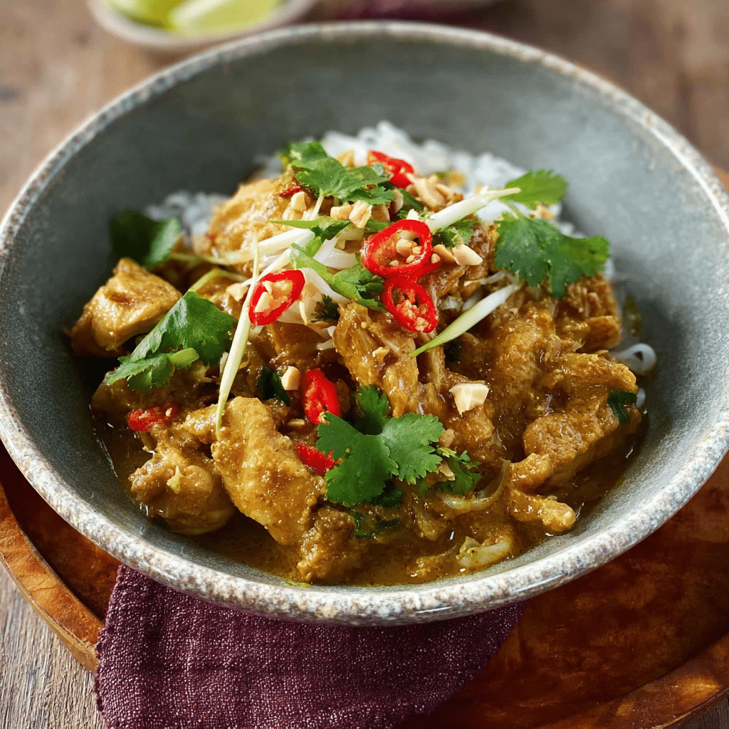 Use chicken thighs for a juicier result or breasts for a leaner option.Adjust spice level by increasing or decreasing chili paste or flakes.Add vegetables like bell peppers, carrots, or snap peas for extra texture.Use light coconut milk for a lighter version.Thin the sauce with more broth or coconut milk if it becomes too thick.