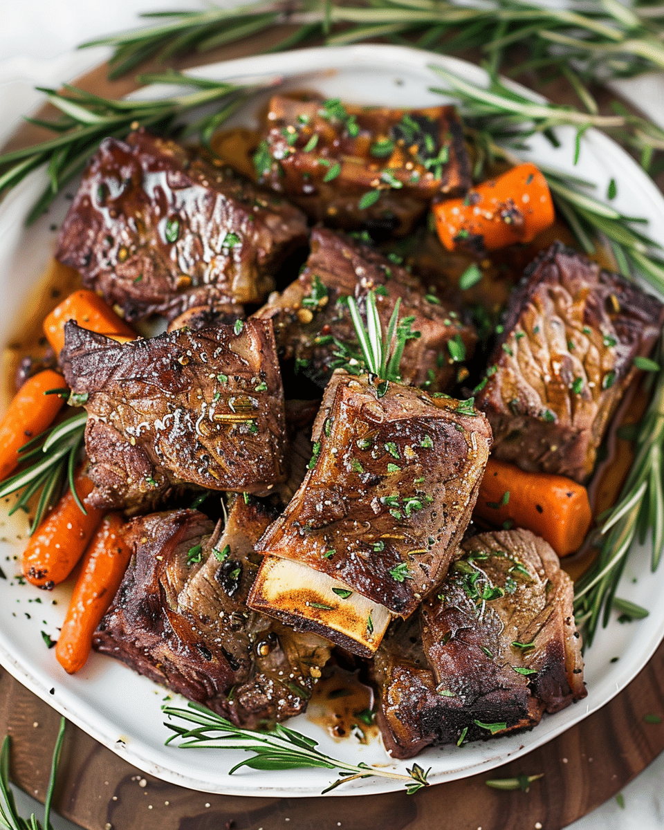 Sear the Short Ribs: Heat olive oil in a large skillet over medium-high heat. Season short ribs with salt and pepper. Brown ribs on all sides (2-3 minutes per side), then remove from skillet and set aside.