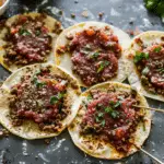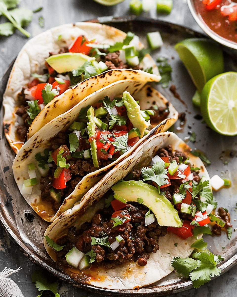 Pre-shape beef balls and prep toppings ahead to streamline cooking.Use flour tortillas for flexibility, or corn for added texture.Don’t overload with wet toppings to keep tacos crispy.Reheat leftovers in a skillet to restore crispiness—avoid microwaving.