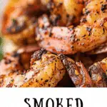 - Smoke for 30–45 minutes or until shrimp are pink, opaque, and slightly browned on edges.