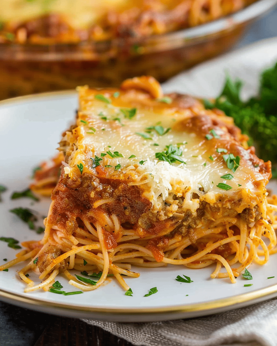 Spaghetti Pie is a comforting and hearty dish that brings together the best elements of a classic spaghetti dinner in a fun and creative way. With its cheesy spaghetti “crust,” savory meat sauce, and bubbling layer of cheese, this dish is sure to become a family favorite. It’s perfect for feeding a crowd, making ahead, or enjoying as leftovers. Whether you’re serving it for dinner, a potluck, or a special occasion, Spaghetti Pie is a delicious, satisfying meal that everyone will love!
