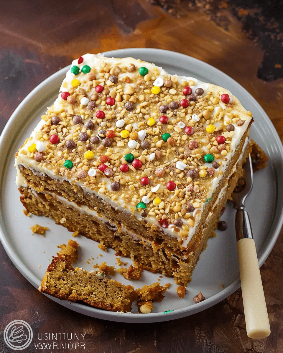 Cream Cheese Frosting: Spread a generous layer of cream cheese frosting on top for a rich and tangy complement to the sweetness of the cake.