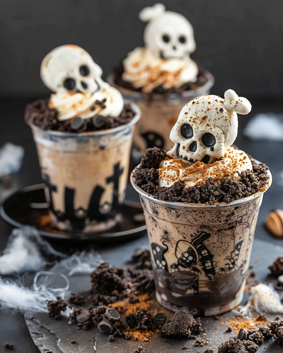 Spooky Graveyard Dirt Cups are a ghoulishly delightful treat that’s as fun to make as it is to eat. Perfect for Halloween celebrations, they combine playful decorations with classic chocolate flavor in a no-bake dessert that everyone will enjoy. Whether you’re crafting them with kids or serving them at a party, these spooky cups are sure to be a graveyard smash.