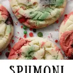 Spumoni is a layered Italian dessert typically made of cherry, pistachio, and chocolate ice cream, which inspired the flavors in these cookies.