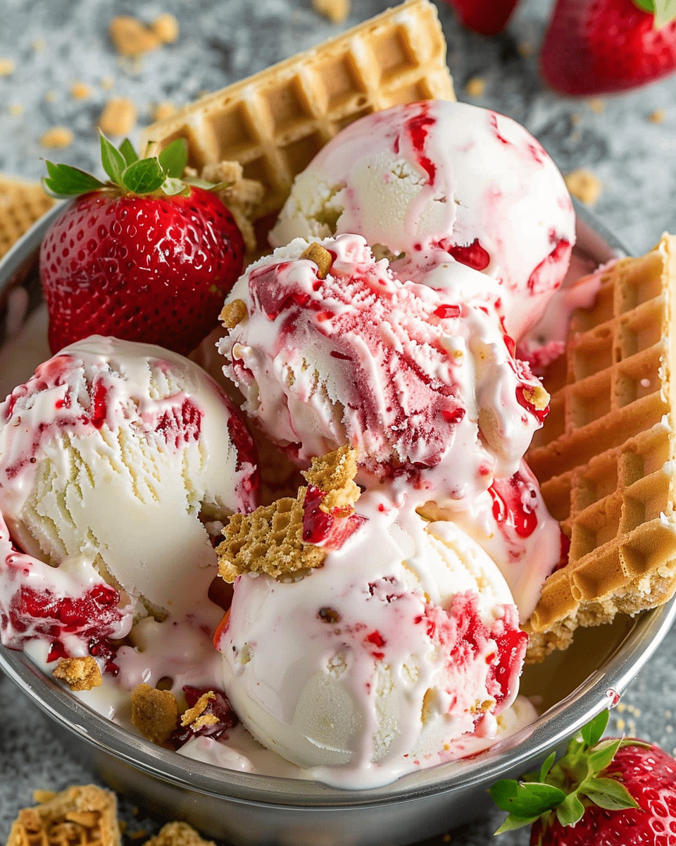 If you’re a fan of strawberry cheesecake, this ice cream takes things to the next level. It’s no-churn, meaning no ice cream maker is required, making it super accessible for home cooks. The combination of tangy cream cheese, sweetened condensed milk, and fresh strawberries creates a luxurious texture and rich flavor. Plus, the crushed graham crackers add that signature cheesecake crust taste, giving it an authentic feel.