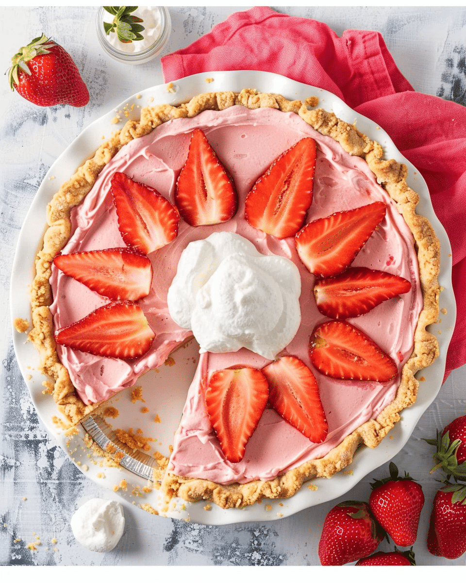 This pie is a fun, fruity, and fuss-free treat that anyone can whip up in minutes. It’s perfect for hot days when you don’t want to turn on the oven, and its light texture and bold strawberry taste make it a hit with both kids and adults. You only need a handful of ingredients and no baking skills to create this deliciously cool dessert.