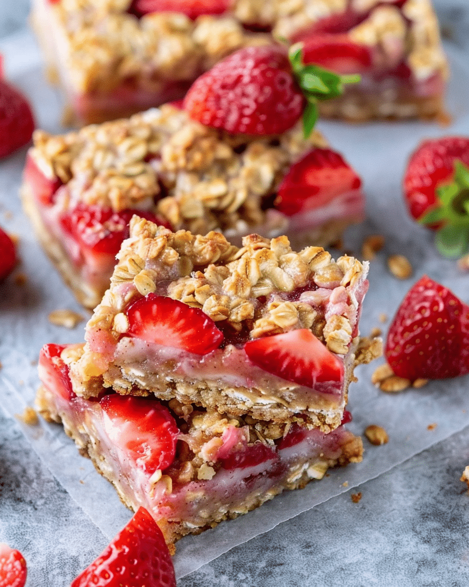 These Strawberry Oatmeal Bars combine a chewy oat crust with a sweet strawberry filling and a crumbly topping. Perfect for breakfast, snacks, or dessert, they’re easy to make and irresistibly delicious.
