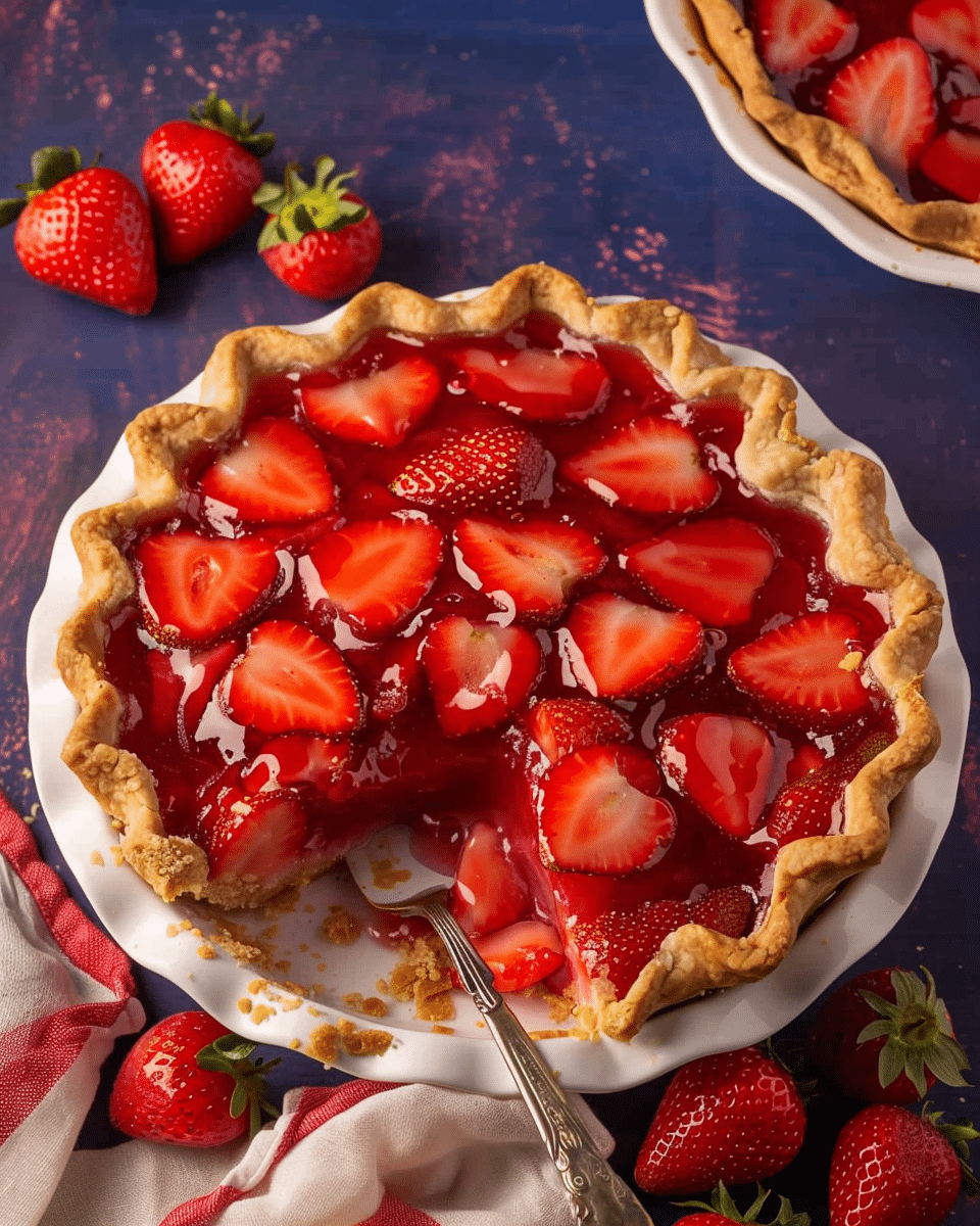 Storage: Store the strawberry pie in the refrigerator for up to 3-4 days. Keep it covered to prevent it from drying out.