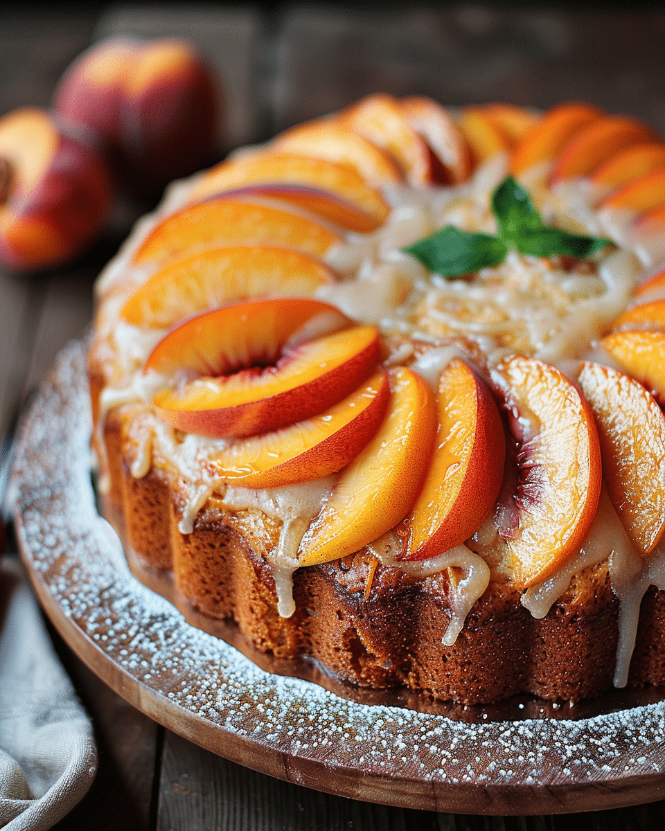 Peach glaze: Make a peach glaze by combining peach preserves with a little water or lemon juice and drizzling it over the cooled cake for extra peach flavor.