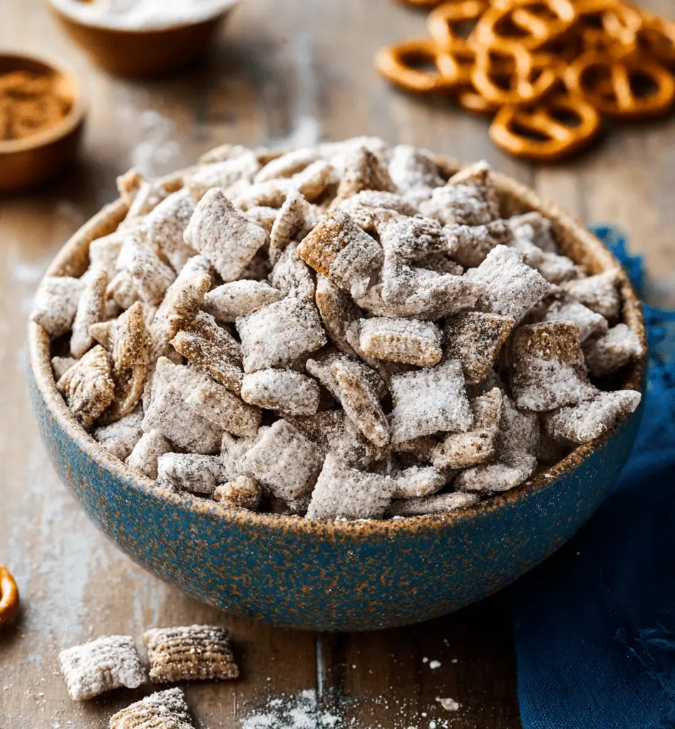 Sweet and Salty Puppy Chow is a quick, crowd‑pleasing snack that combines crunchy cereal with a sweet chocolate‑peanut butter coating and a dusting of powdered sugar. Easy to make and endlessly customizable, it’s a fun treat for snacking any time.