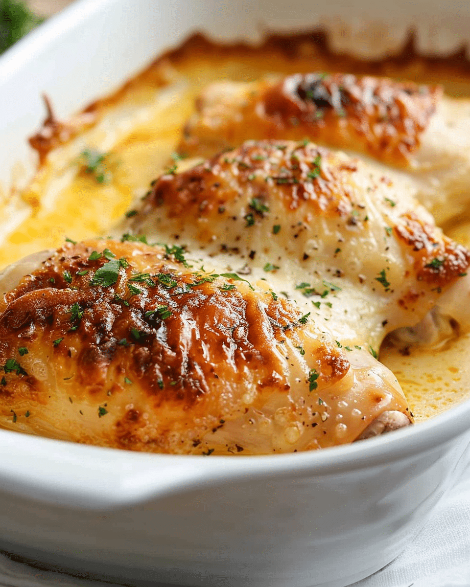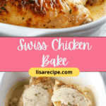 Swiss Chicken Bake is a creamy, cheesy casserole featuring tender chicken breasts layered with Swiss cheese, a savory sauce, and a buttery stuffing or breadcrumb topping. It’s a cozy, crowd-pleasing dish perfect for weeknight dinners or family gatherings.