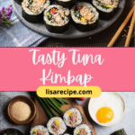 Tasty tuna kimbap is a Korean-style seaweed rice roll filled with creamy tuna salad, crisp vegetables, and seasoned rice. It’s portable, flavorful, and perfect for lunchboxes, picnics, or a light meal.