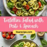 Tortellini Salad with Pesto & Spinach is a quick and refreshing pasta salad made with tender cheese tortellini, fresh baby spinach, juicy cherry tomatoes, and a flavorful pesto dressing. It’s easy, colorful, and perfect for any occasion.