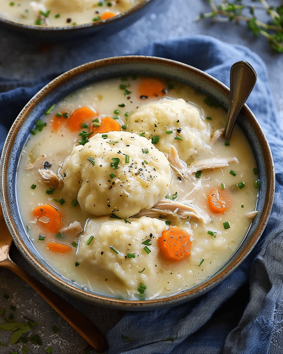 Do not lift the lid while the dumplings are cooking to ensure they steam properly.Make it creamy by stirring in a splash of cream or half-and-half before serving.Use gluten-free flour for the dumplings if needed.Add greens like spinach or peas at the end for extra nutrition.Best enjoyed fresh; dumplings may become soggy when frozen.