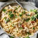 Turkey tetrazzini is a creamy baked pasta casserole made with tender turkey, savory mushrooms, and a rich cheese sauce. It’s a comforting and delicious way to use up leftover turkey, perfect for weeknight dinners or holiday leftovers.