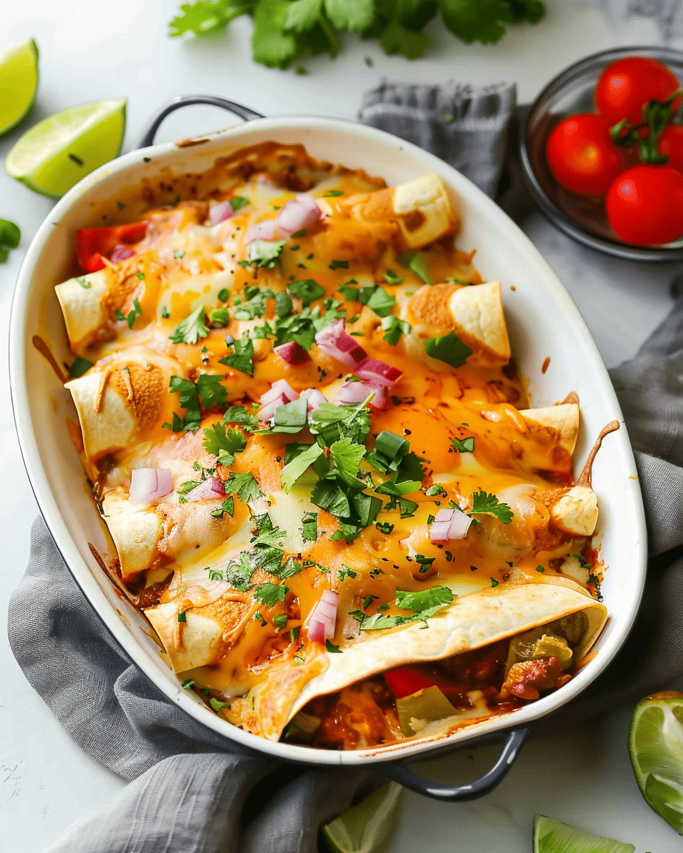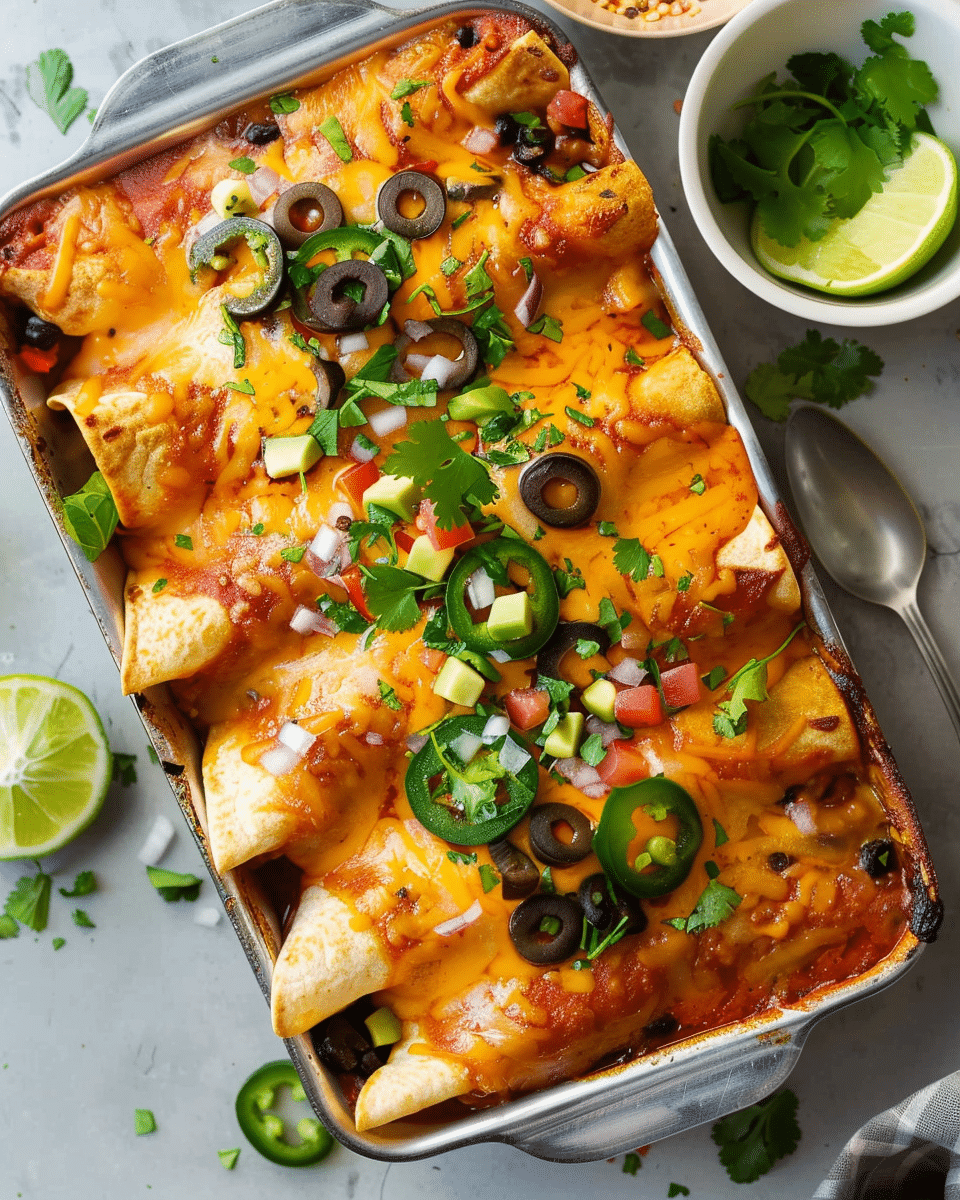 Vegetarian Enchiladas are a flavorful, satisfying, and easy-to-make dish that proves you don’t need meat for a delicious meal. Packed with vegetables, beans, and melty cheese, they’re perfect for weeknight dinners, family gatherings, or make-ahead lunches. Enjoy this crowd-pleasing comfort food with your favorite toppings and sides for a wholesome, vibrant meal.
