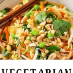 Vegetarian Pad Thai is a vibrant noodle stir-fry made with rice noodles, vegetables, scrambled eggs, and a tangy tamarind-based sauce. This meat-free version of the Thai classic is packed with bold flavor, texture, and color, perfect for a quick, satisfying meal.